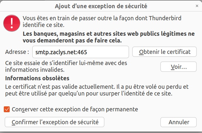 Aujourd'hui lors d'une tentative d'envoyer un courriel, voici l'avertissement qui s'affiche (en pièce jointe).