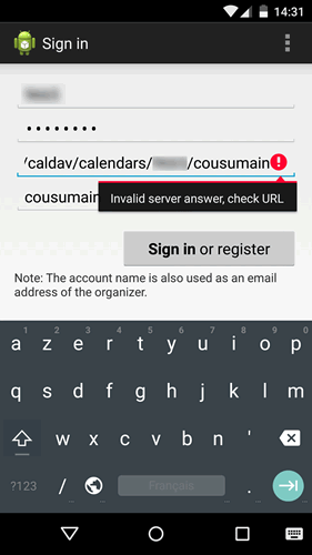Depuis qqs jours (début du mois il me semble, le 10.11 peut être ?), je n'arrive plus à synchroniser mes calendriers avec mon smartphone (j'utilise Caldav Sync Free Beta sous Android 4.4.4 puis 5.0 depuis qqs jours).