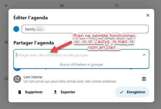 Il semble que Zaclys n'ait pas implémenté le Partage d'agenda avec d'autres utilisateurs ou groupes.