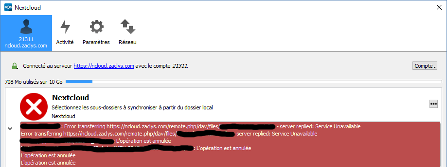 Depuis 24 h je n'ai plus de connexion vers Nextcloud avec l'application sous Windows.