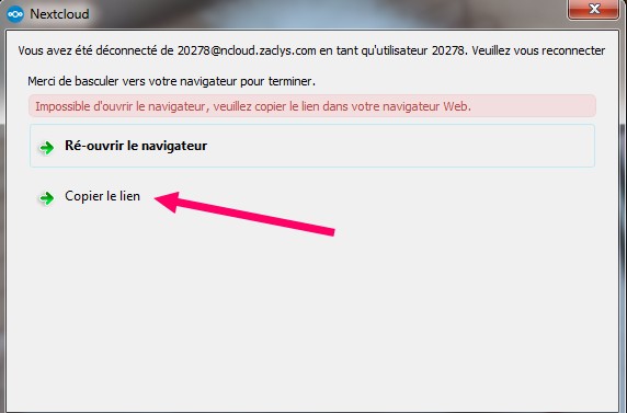 Or maintenant, pour pouvoir me connecter, je dois au préalable et à chaque fois, ouvrir mon navigateur et y copier le lien proposé.
