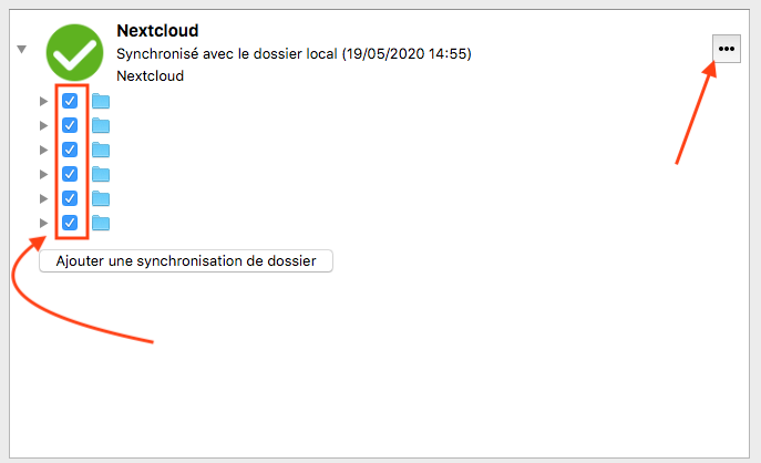 Dans l'interface du client Nextcloud, vérifiez que tous les dossiers synchronisés sont bien cochés.