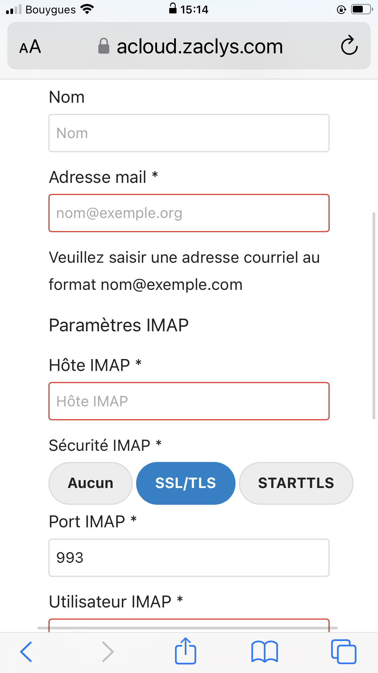 Pourriez vous mettre ici une copie d'écran en exemple de la configuration pour accéder au webmail avec ce navigateur.