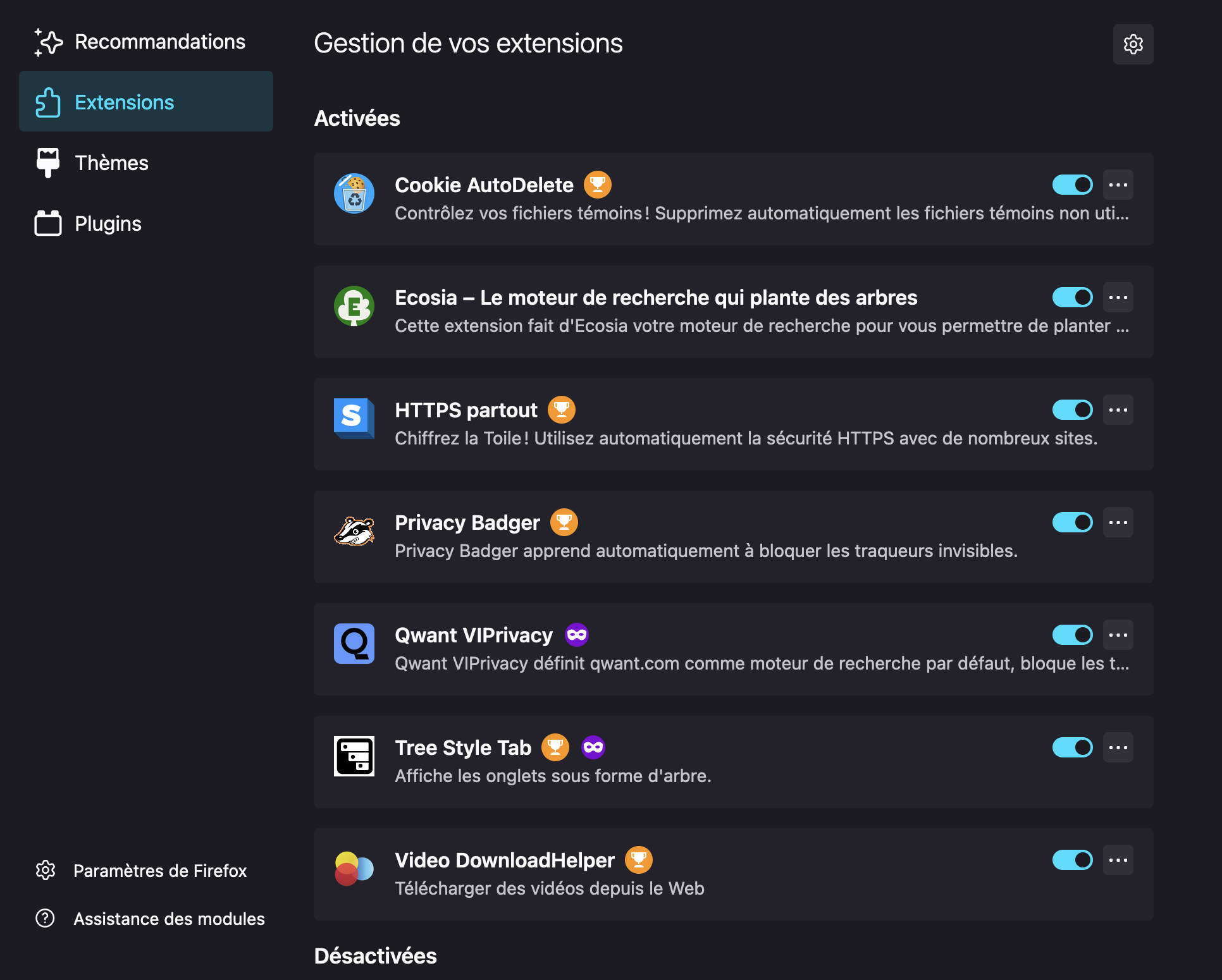 Du coup, j'ai vu qu'il y avait aussi des extensions. Je suis allé voir, j'en avais une douzaine. J'en ai désactivé quelques-unes, sans davantage de résultat. Voici celles qui restent activées (cf copie-écran jointe) : y en a-t-il une susceptible d'entraver le fonctionnement de "Sondage" ?