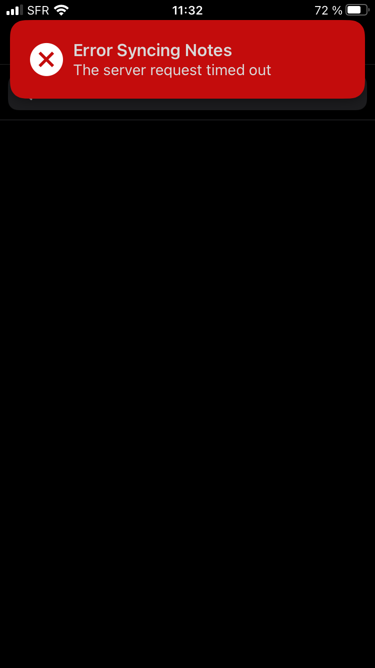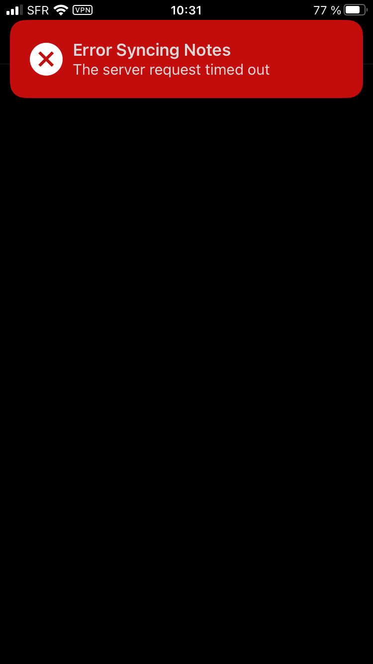 Merci, j'ai fais le test sans VPN et le message "Error Syncing Notes : The server request timed out" est toujours là.
