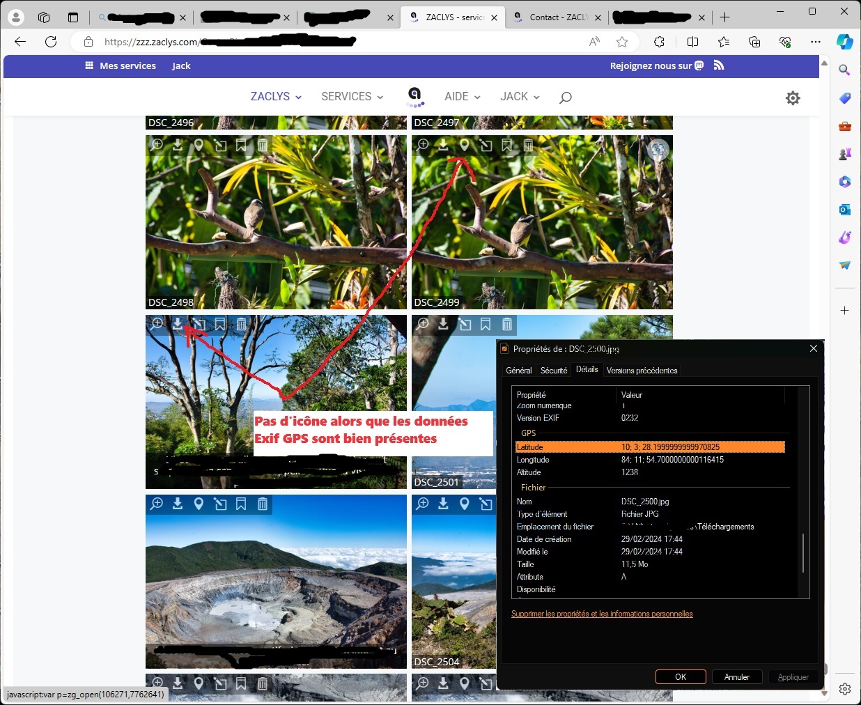Sur les albums, le bouton openstreetmap s'affiche dès qu'il y a des données GPS dans l'image. Mais j'ai une photo qui refuse obstinément d'afficher le bouton. Pourtant les données EXIF semblent bonnes (j'ai vérifié avec un outil dédié), je ne vois aucune différence avec les autres photos qui fonctionnent bien. Qu'est ce qui "déclenche" l'apparition du bouton openstreetmap ? Il y a une balise EXIF spécifique qui est vérifiée ?
