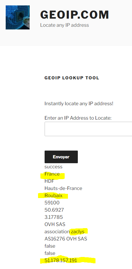 méfiance avec les plugins exotiques, sur geoip.com cette ip affiche France / Roubaix :