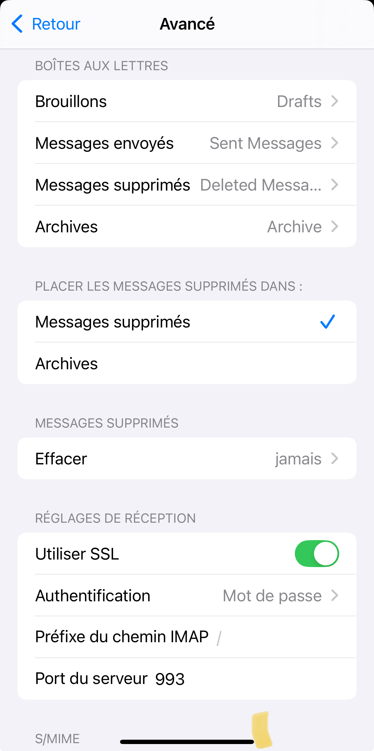 - La suggestion de renseigner "/" du champ IMAP dans les paramétrage du compte (solution sur le lien du forum Apple en anglais.)