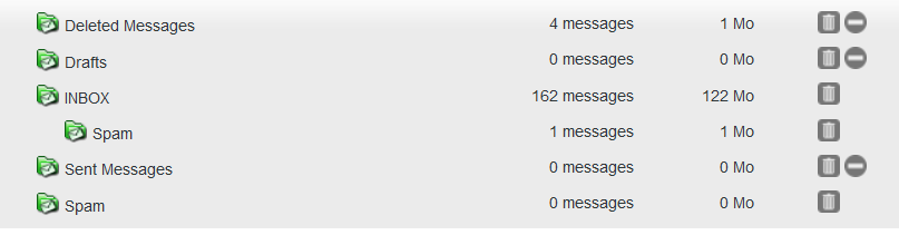 2- Depuis l'interface web du serveur de messagerie j'ai supprimé les dossiers vides / inutiles ( et modifiables !!).