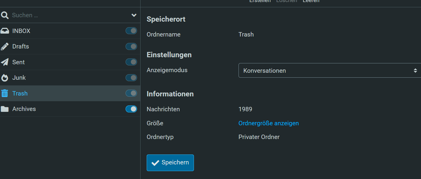 Aujourd’hui j’ai remarqué que sur webmail dans les paramètres pour la poubelle sont affiché 1989 mails, mais il ne sont pas visible que autour de vingtaine.
