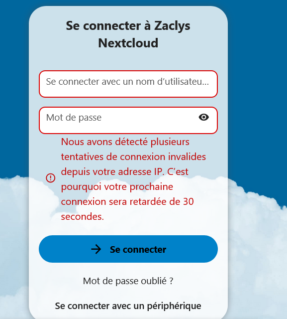 Pour tout vérifier, j'ai repris l'Url de mon carnet sur le nuage Zaclys, le mot de passe étant correct puisque ce nuage l'a accepté. Je n'arrive donc pas à comprendre où est l'erreur. Je constate simplement que le nuage de Zaclys me signale "plusieurs tentatives de connexion invalides".