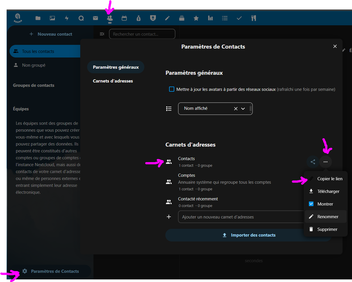 j'ai relu plusieurs fois le message et j'avoue que je n'arrive pas à visualiser votre organisation globale entre les comptes Nextcloud, Cardbook et Thunderbird.