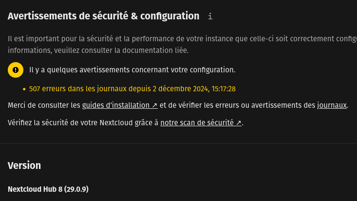 Non, c'est pareil. Dans les paramètres admin, le serveur annonce de nombreuses erreurs. Serait-ce lié ?