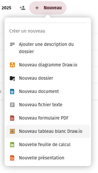Nous utilisons l'application Draw.io depuis un moment. L'application est installée sur le serveur, mais la création de doc Draw.io n'est plus disponible dans Nouveau.