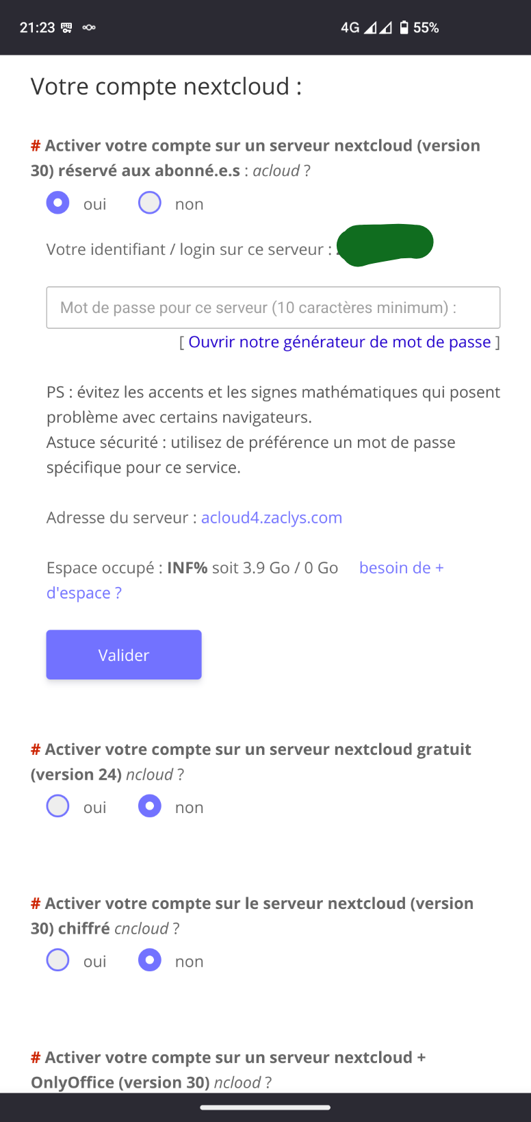 Effectivement même pb : par le passé vous aviez aussi activé le serveur "nclood" (celui avec onlyoffice) , alors que votre abonnement actuel n'est plus suffisant. Je viens de le désactiver.