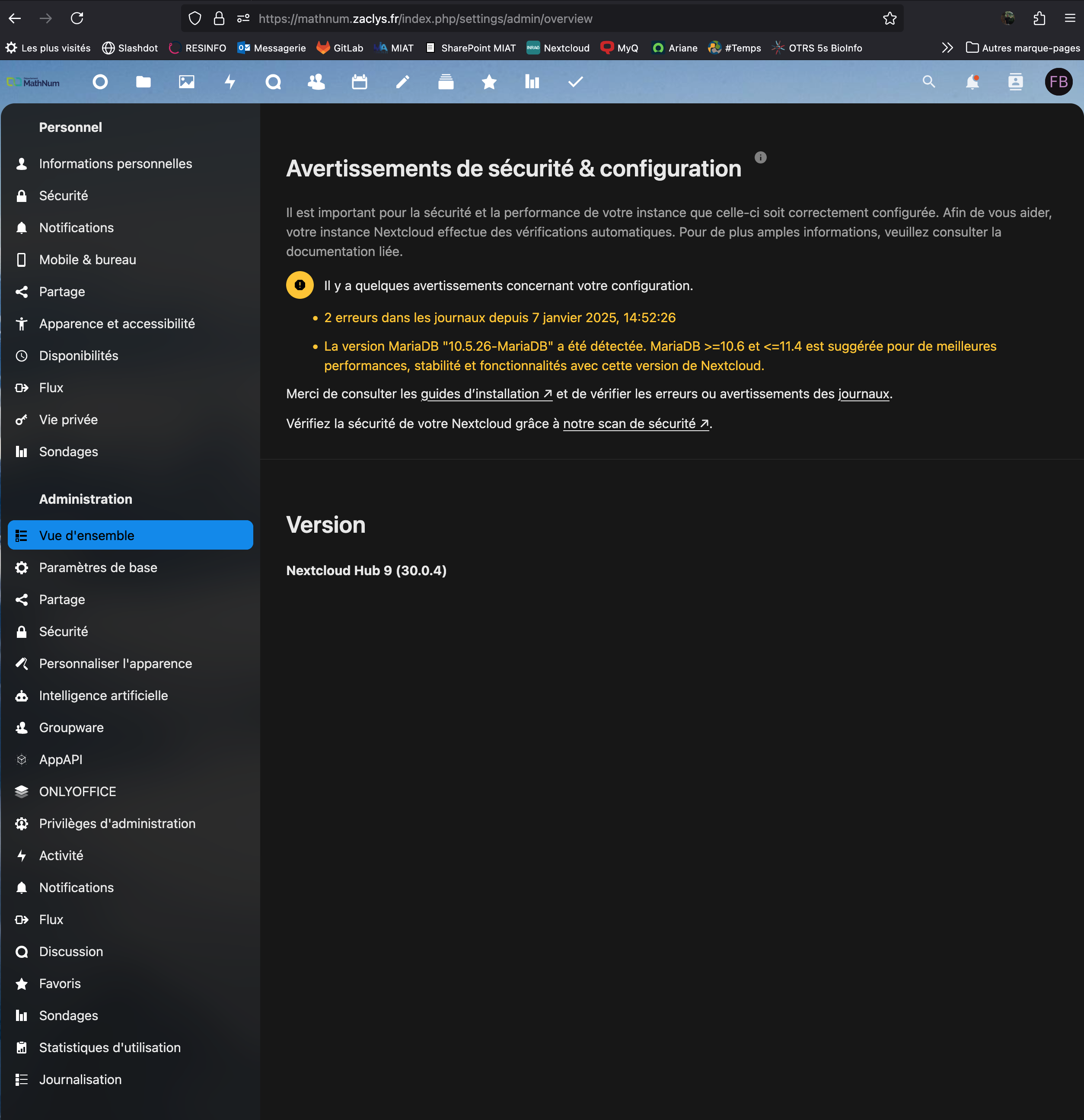 Enfin pour répondre à votre pertinente remarque laissée sur notre formulaire de contact (le forum n'est pas toujours adapté pour le support technique nécessitant des échanges d'infos privées ) : on va dans les jours qui viennent ajouter un formulaire de contact spécifique pour nos clients pro qui louent un serveur dédié chez zaclys (nextcloud, onlyoffice, BigBlueButton, zulip, ostickets, mastodon, mattermost, etc ).
