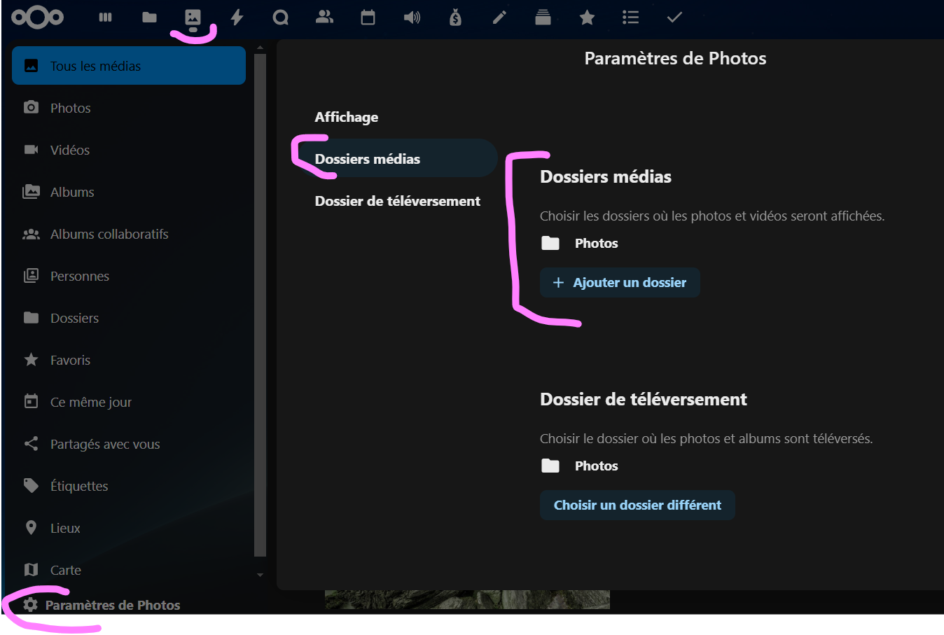 Lorsque j'ouvre nclood, j'ai ce message : "Impossible de charger le dossier des photos" qui apparaît. De même si je veux aller dans l'appli "photo" de Nextcloud.