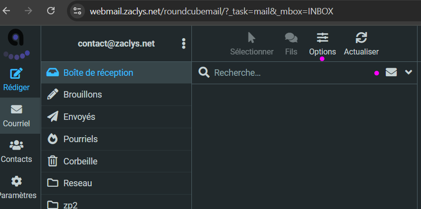 Dans mon interface webmail, les messages dans la boite de réception ne s'affichent pas.