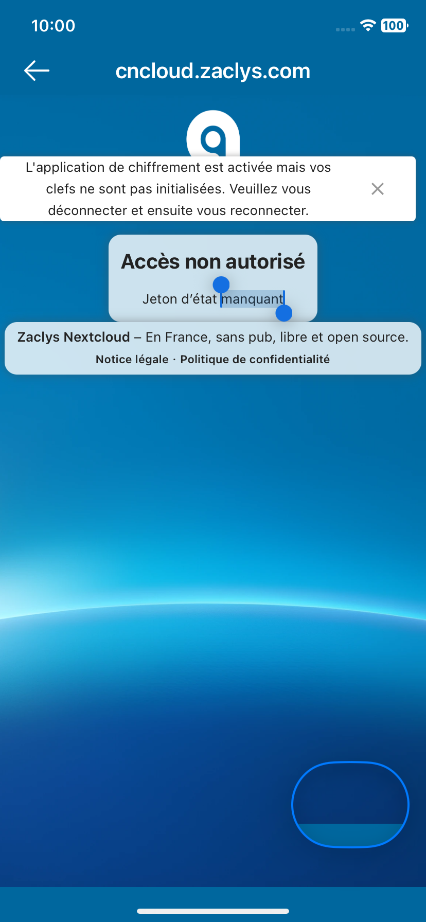 Re: Site nclood.zaclys.com non accessible par synchro smartphone iOS