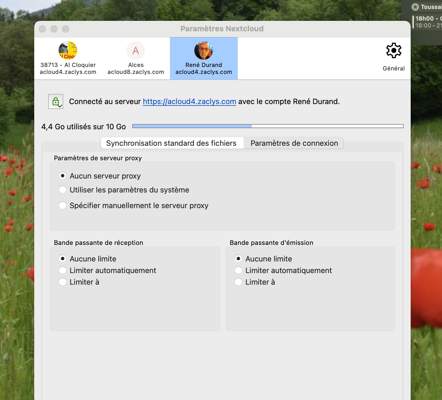 À un moment, j’ai décidé de me mettre en conformité et j’ai installé le client Nextcloud.