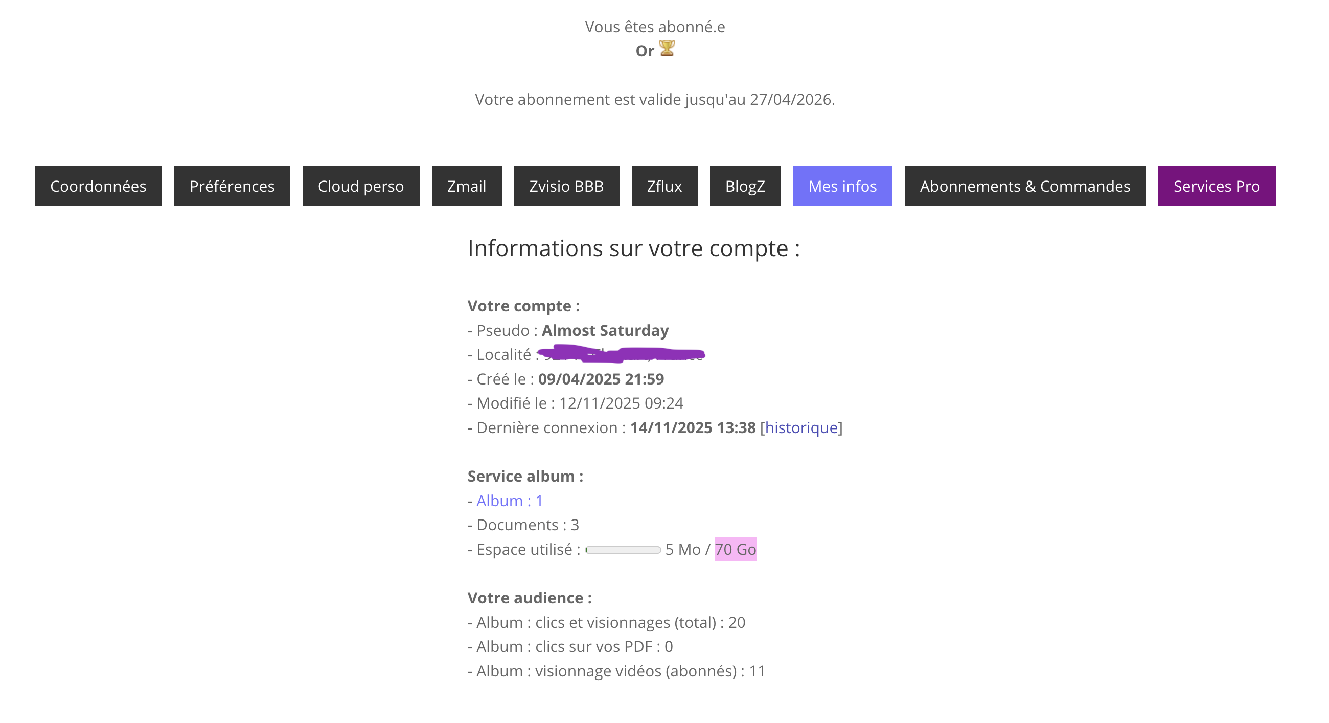 @Harlock : donc logiquement vous devriez avoir 30 Go sur le service nextcloud ? si ce n'est pas le cas, sur Zaclys.com , dans"mon profil" , onglet "cloud" , vérifiez vos réglages.