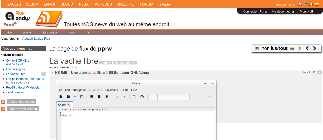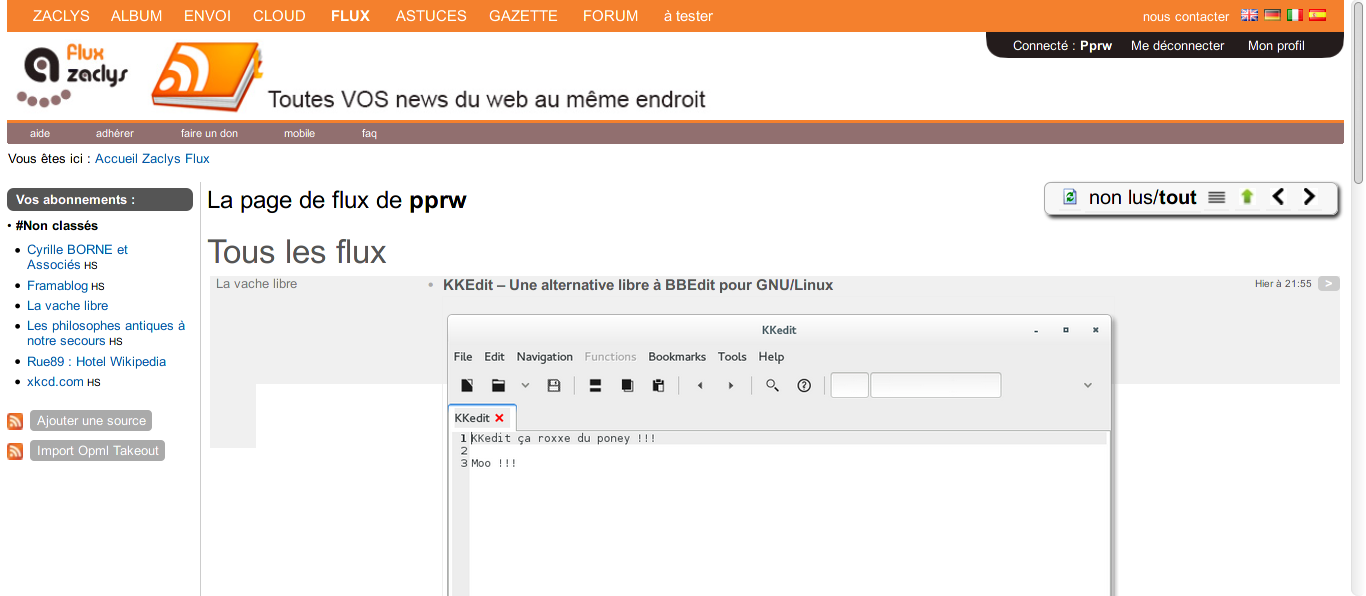chers amis nous devons réfléchir à améliorer Flux, le lecteur RSS de la mère Zaclys : http://flux.zaclys.com/