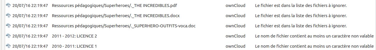 Il y a des documents que le client OwnCloud n'arrive pas à synchroniser vers le serveur. Certains documents se trouvent dans le dossier OwnCloud de mon pc, mais je ne peux pas les retrouver quand j'ouvre le cloud avec Firefox. J'ai fouillé les paramètres du client, voici ce que j'ai trouvé.