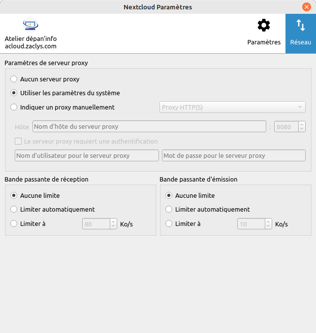 Mon hypothèse est que Zaclys a du faire la mise à jour du serveur acloud relativement récemment vers la version 25 ce qui a entrainé l'apparition du bug qui affecte toutes les personnes ayant le paramètre de limite de bande passante activée en téléversement.