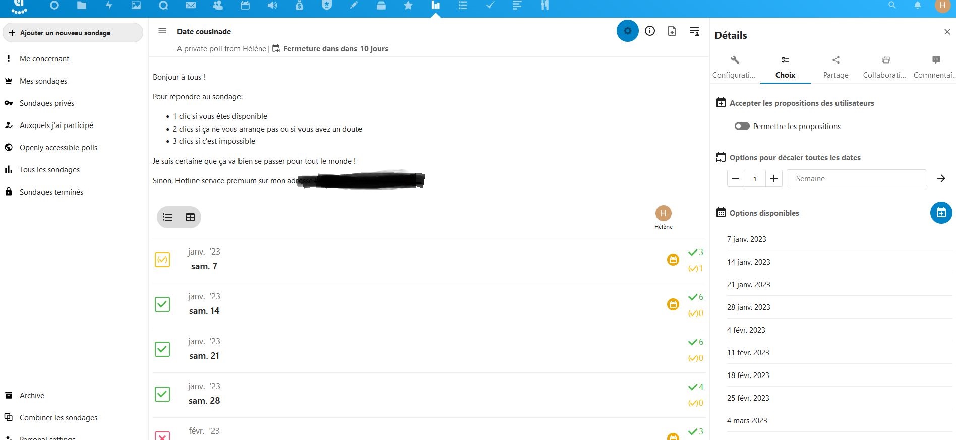 - Supprimer les réponses d'une personne à un sondage Nextcloud