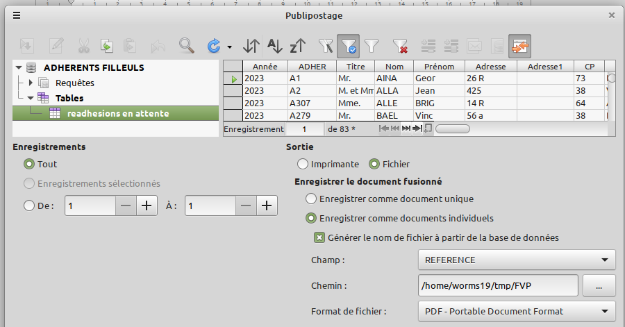 Avec libreoffice je créé pour une association des fiches personnalisées d'adhésions, convocations AGs, environ 100 à chaque fois