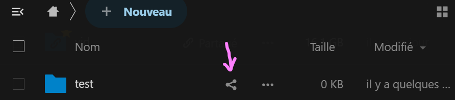 Depuis l'interface web de nextcloud , utilisez le bouton "partager" à droite du dossier :