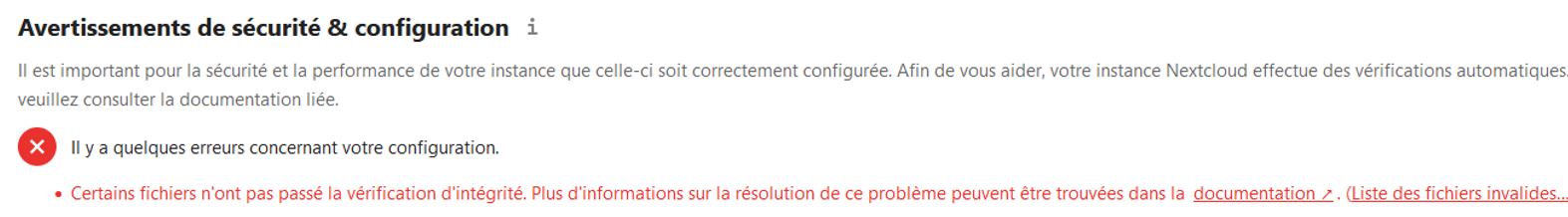 Avertissement sécurité & configuration : certains fichiers n'ont pas passé la vérification d'intégrité