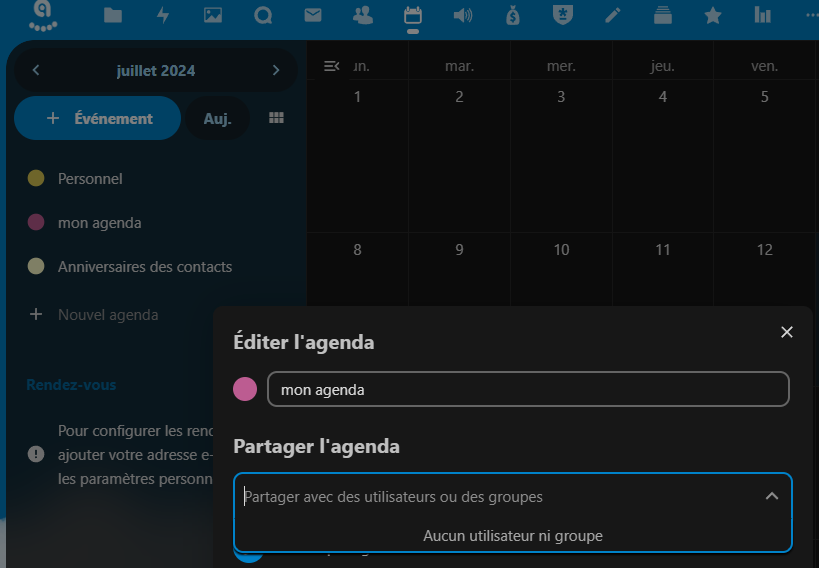 Là je fais "nouvel agenda" et j'ai 2 options "nouvel agenda" ou "nouvel abonnement par lien"