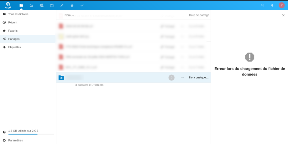 Capture d'écran sur ncloud5 (qui reçois le dossier partagé)Erreur lors du chargement du fichier de données