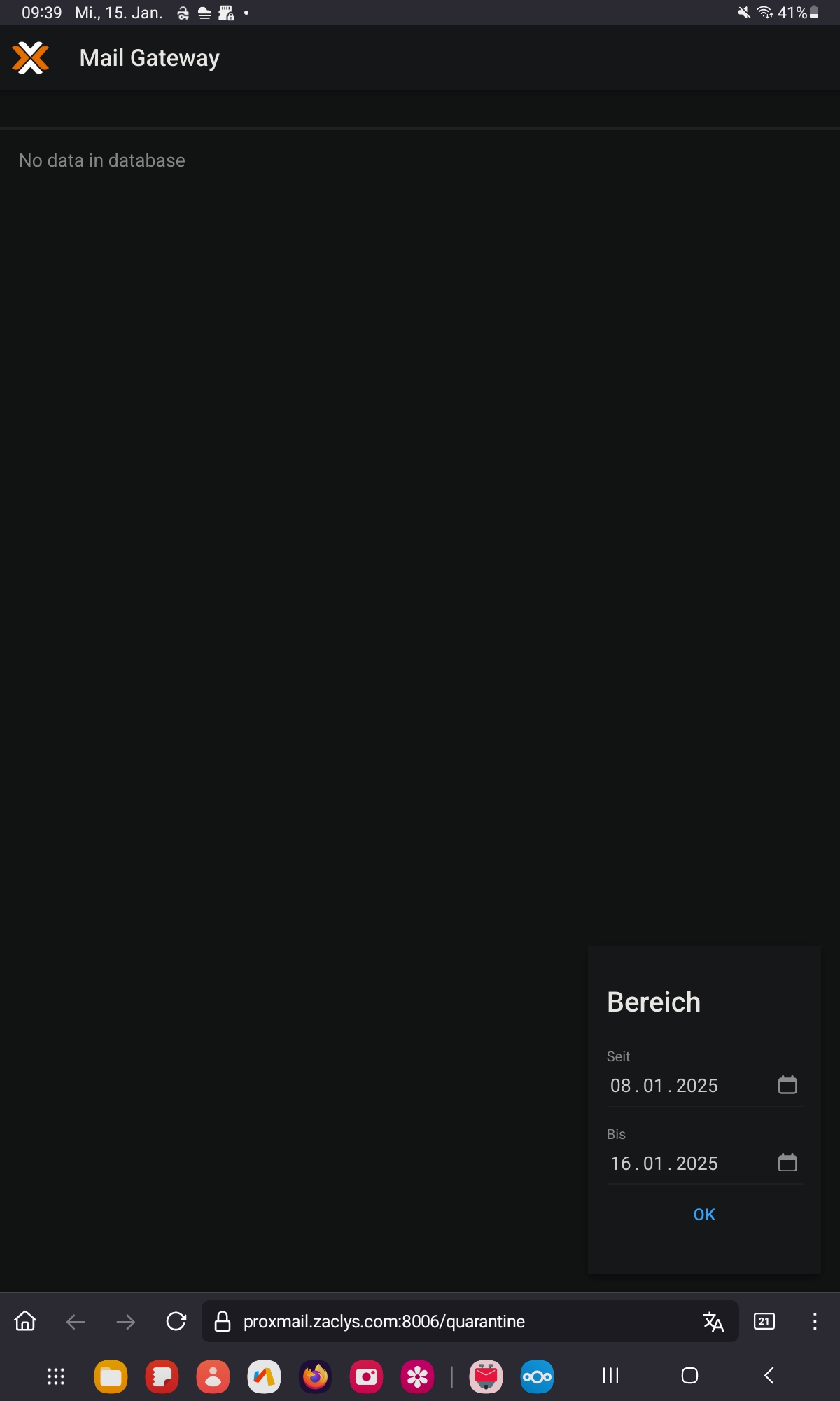 Le problème revient, si je refait la même procédure sur ma tablette Android. Là je ne vois que les mails qualifiés spam, s'il en y a, mais en rest la page e vide comme dans le screeshot.