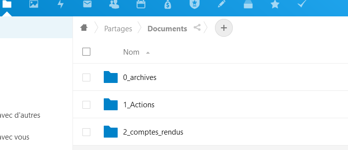- sur ncloud , créez un nouveau dossier ( mais pas dans le dossier spécial "/Partages")
