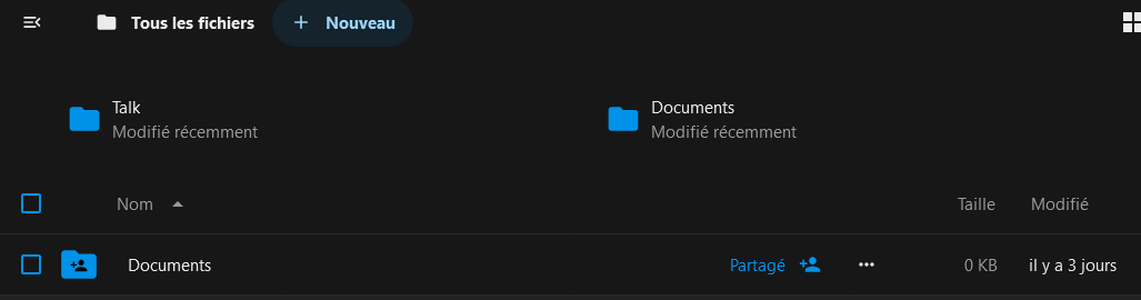 J'ai donc copié tous les documents de NCloud vers ce dossier partagé (copie comprenant une arborescence de dossiers).