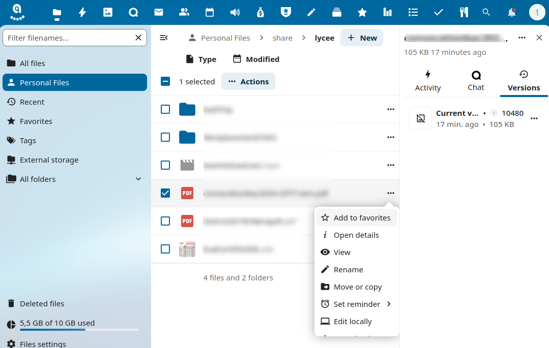 Depuis une semaine, je n'ai plus la fonction partage de fichier accessible sur le acloud9.