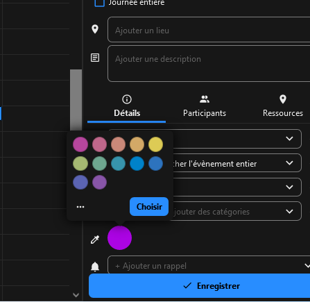 est-il possible de personnaliser la palette de couleurs des évènements proposée par défaut dans le calendrier Nextcloud ? (sans avoir à ouvrir systématiquement "choisir", entrer le code panthone, etc. )