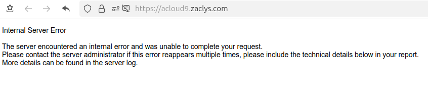 Même problème et même message d'erreur pour https://acloud2.zaclys.com/