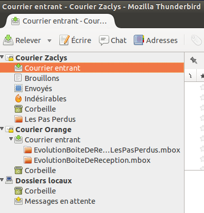 - Et depuis Thunderbird, en déplaçant à la souris le dossier "Les pas perdus" dans la boite de réception, que se passe t-il ?