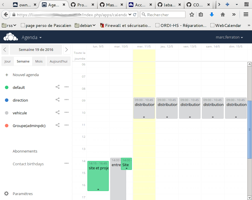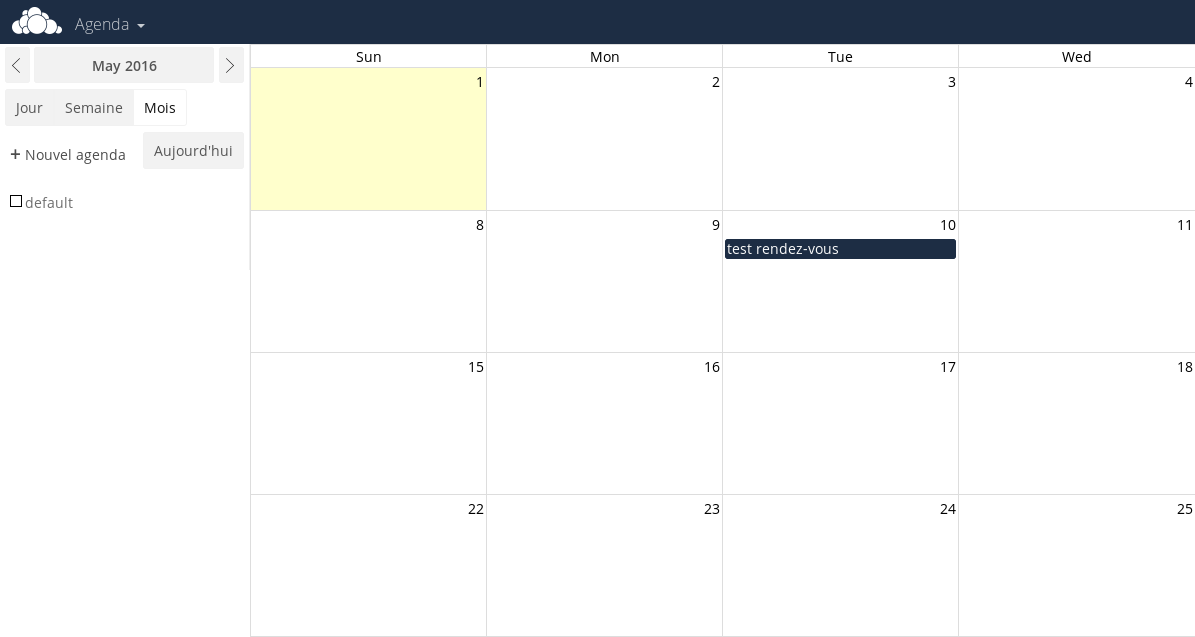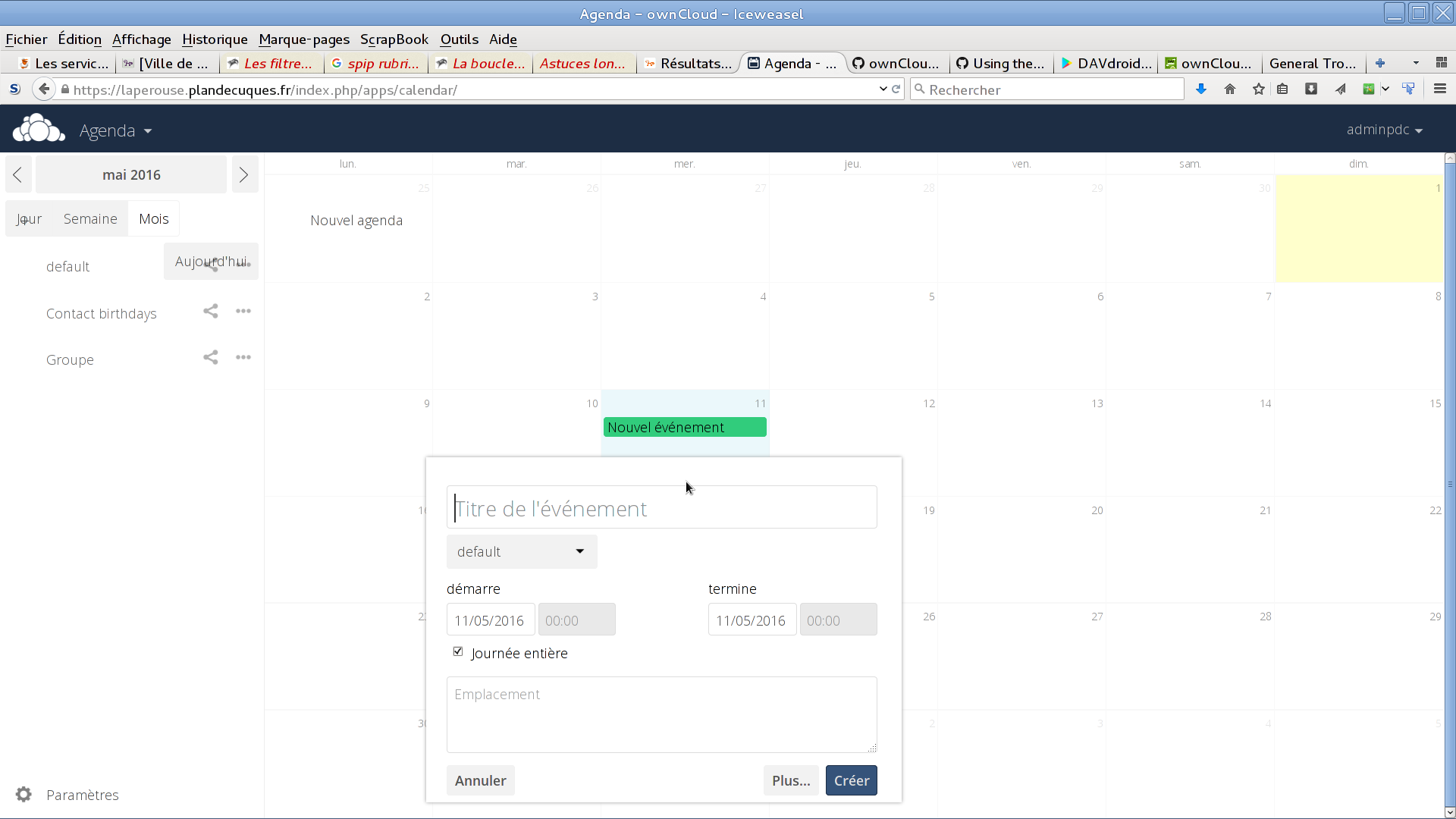 Donc, maintenant je peux enregistrer les évènements, il reste seulement la mise en page à gauche des menus, agendas...