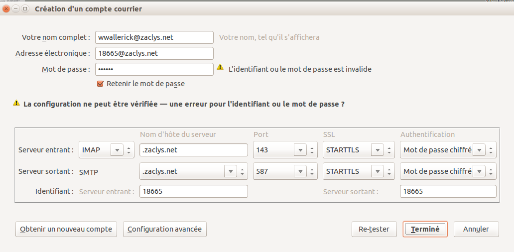 Il manque une partie pour les serveurs entrants et sortants : mail.zaclys.net