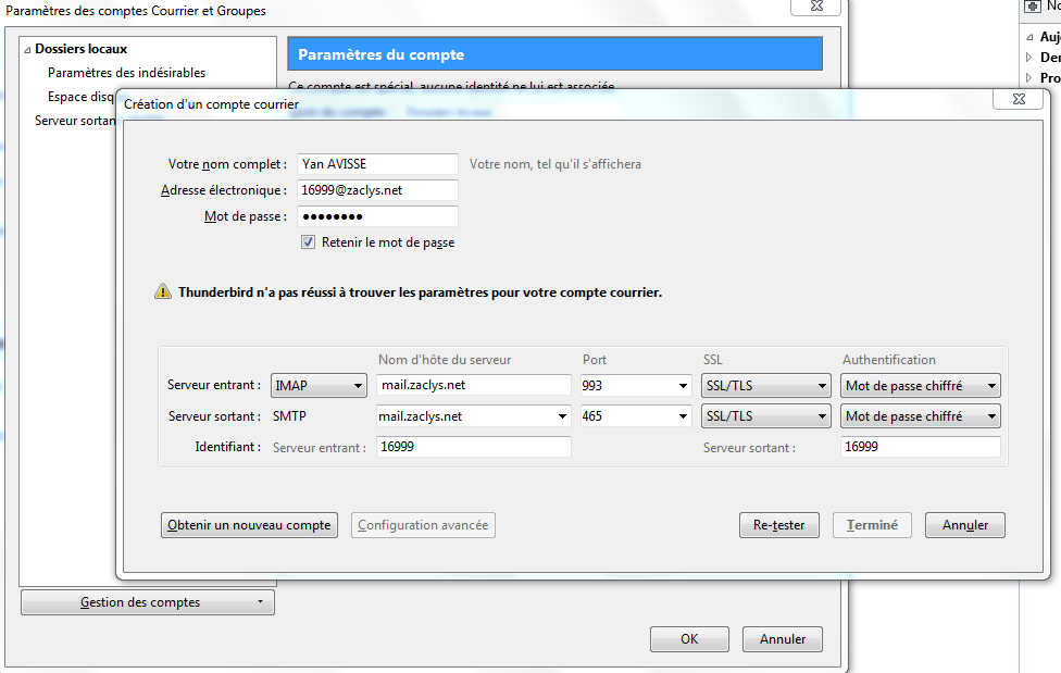 Re: Configuration mail zaclys sur Thunderbird