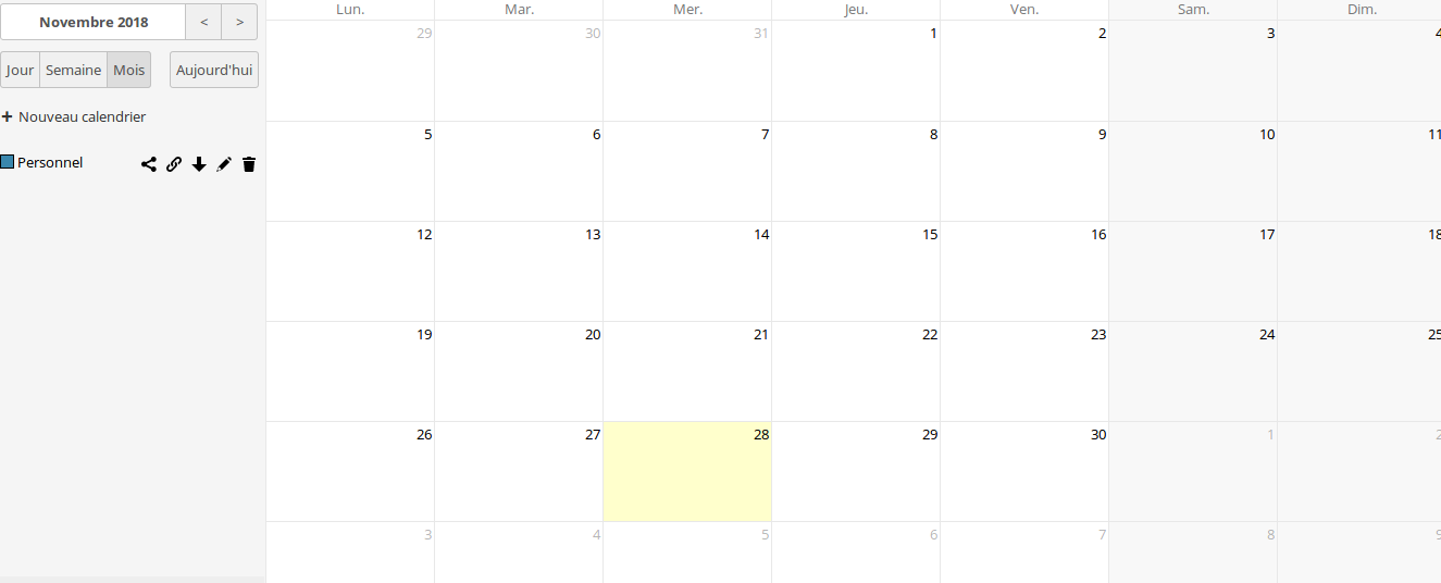 Pour autant, les agenda sont toujours invisibles sur owncloud, et mes différents calendriers ont disparu du volet gauche d'owncloud, à l'exception d'un calendrier par défaut "Personnel" mais qui est vide.