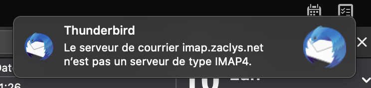 Par contre, en lien avec les mails, je n'arrive plus à ajouter le compte Zaclys dans Thunderbird.