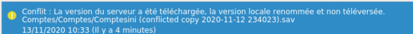 Donc obligé de supprimer les fichiers téléchargés depuis le serveur, renommer les fichiers en conflit, et là çà marche !!!
